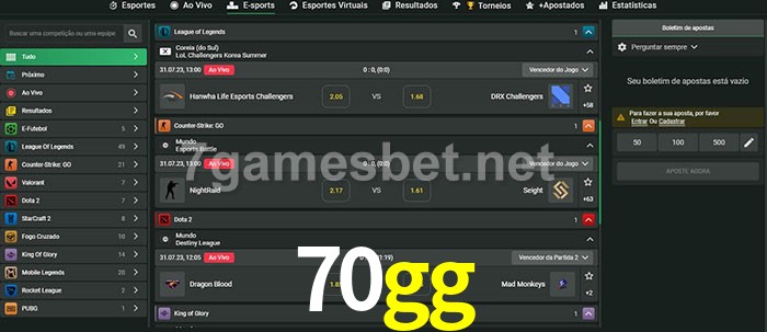 A aposta 70gg oferece aos jogadores a experiência mais conveniente de apostas em eSports!